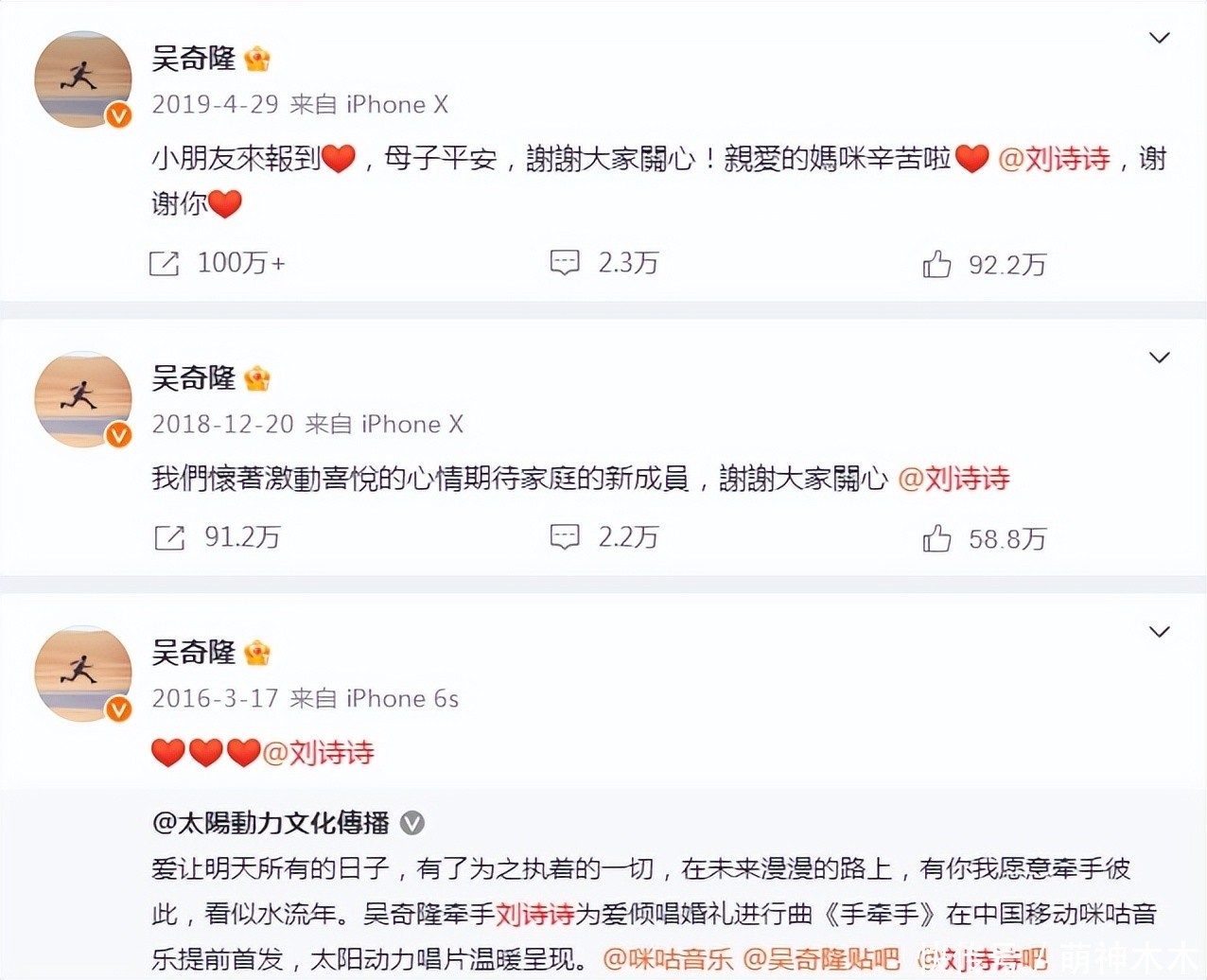 在吴奇隆的社交平台中,他和刘诗诗的互动内容早已停留在了2019年,刘诗诗则早已没有吴奇隆相关内容,并摘掉了婚戒,而吴奇隆近期还戴着婚戒。